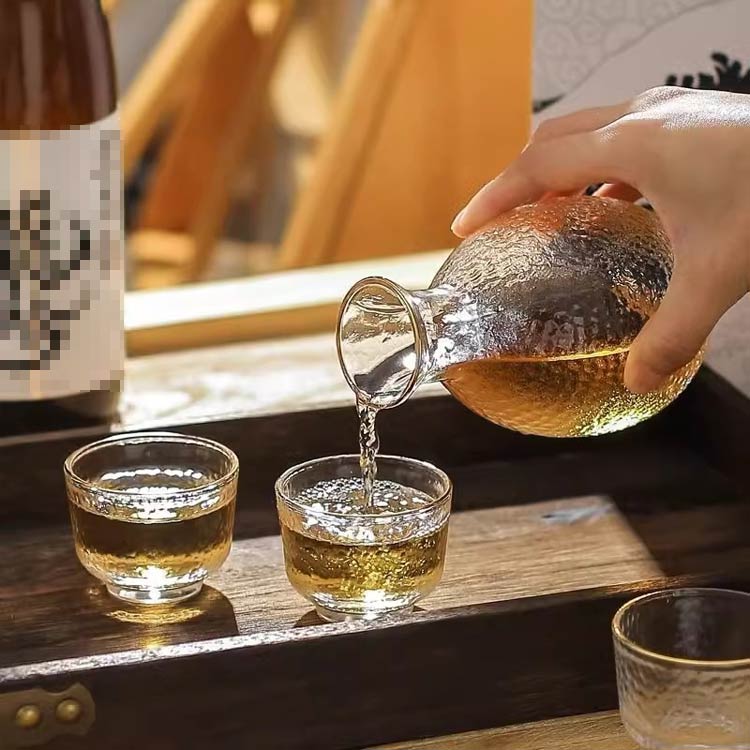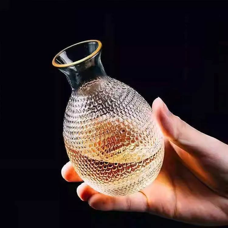 6点セット 冷酒 徳利 冷酒器 冷酒グ 透明 ゴールド縁 マット感 ブルー