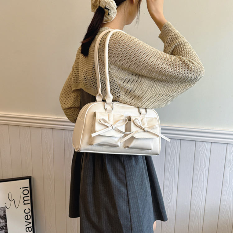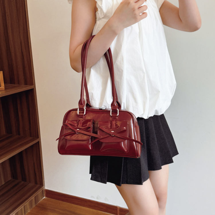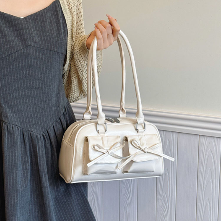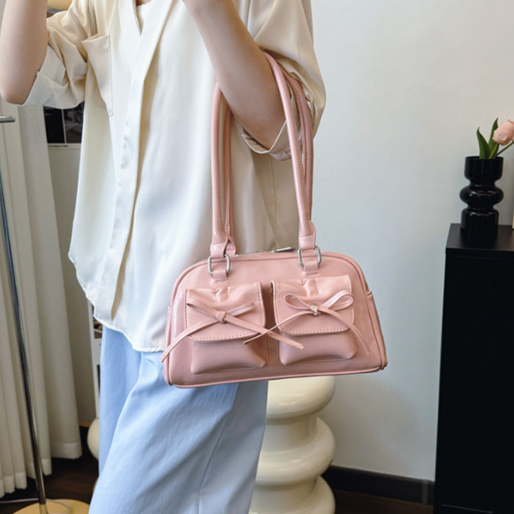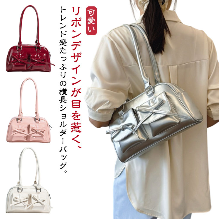 ショルダーバッグ 横長 バッグ リボン バッグ レディースバッグ ボストンバッグ 続々登場 ブラック ホワイト シルバー バーガンディ ピンク