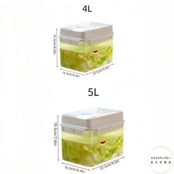 4 5L 大容量密閉キムチ発酵容器 蓋 保存容器 調味料入れ 漬物樽 通販 4L (23.62cm x 16.26cm x 15.24cm) 5L (59.69cm x 41.91cm x 49.53cm)