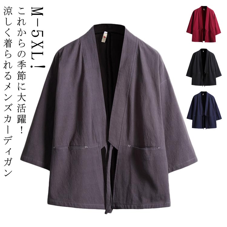 前開き 甚平 メンズ 男性用 和風 春 トップス カーディガン 早い者勝ち 黒 紺 灰 赤 M L XL 2XL 3XL 4XL 5XL