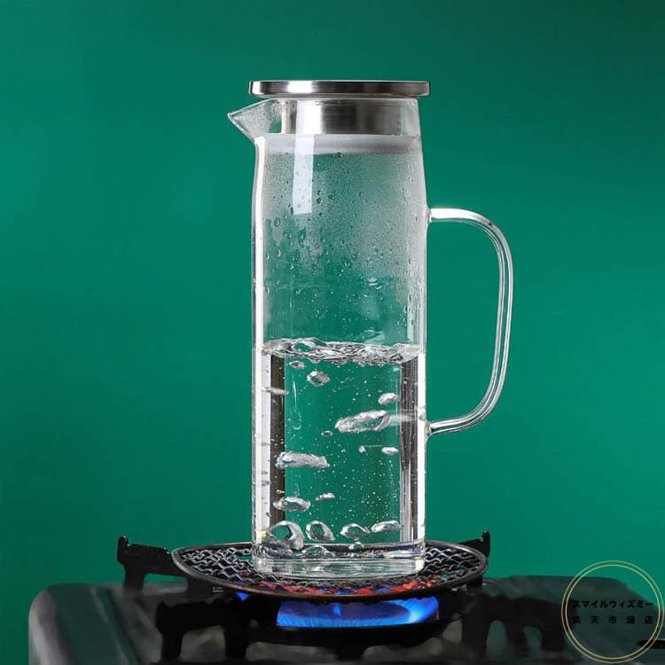 ガラスピッチャー 耐熱 1000ml キッチン用品 食器 調理器具 人気 竹蓋 ステンレス蓋 1L 1.2L 1.5L