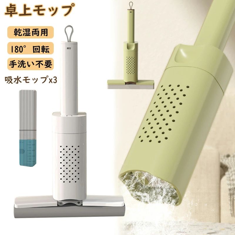 4点セット 卓上モップ 乾湿両用 手洗 日用品雑貨 文房具 手芸 特集 ホワイト グリーン
