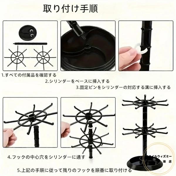 1pc 2層3層回転式16フック収納ラ ブラック 透明 2層回転可能 3層回転可能