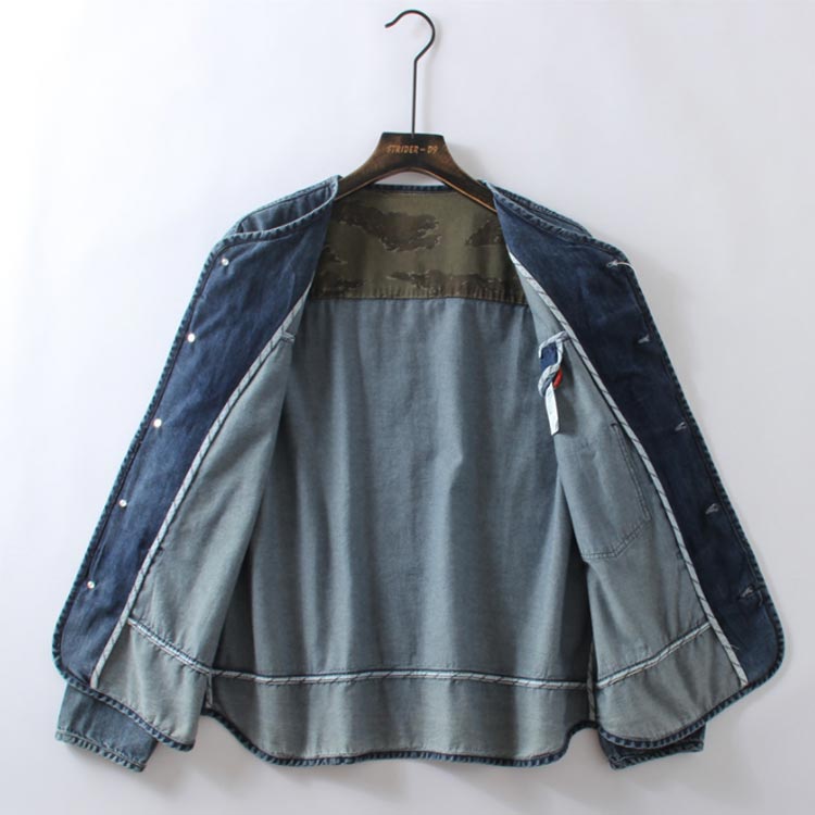 ルーズ ストリート 羽織り アメカジ カジュアル ゆったり ジャケット デニム Gジャン 薄手 ノーカラー 前開き