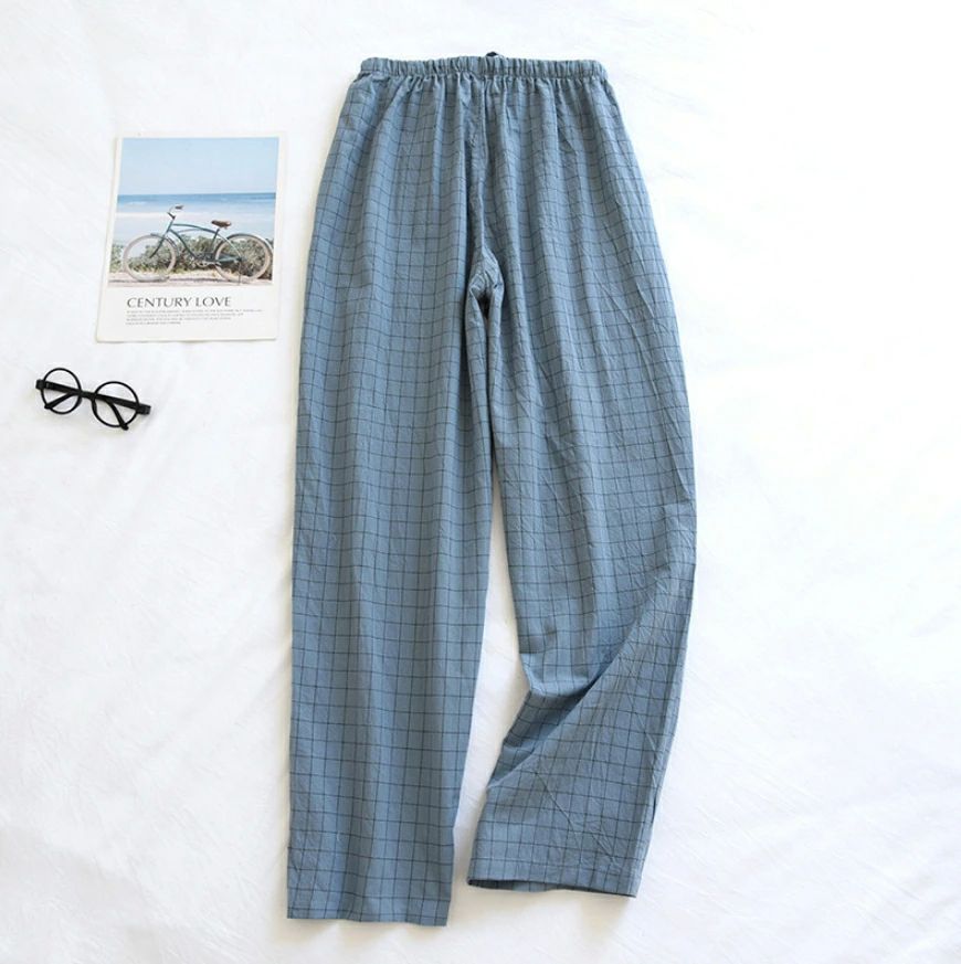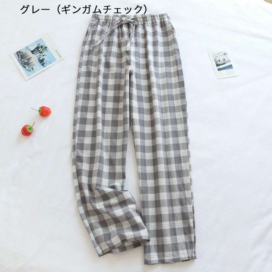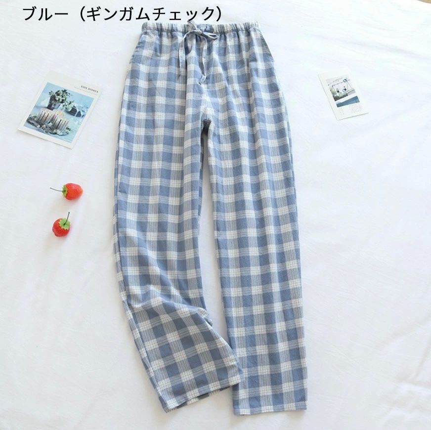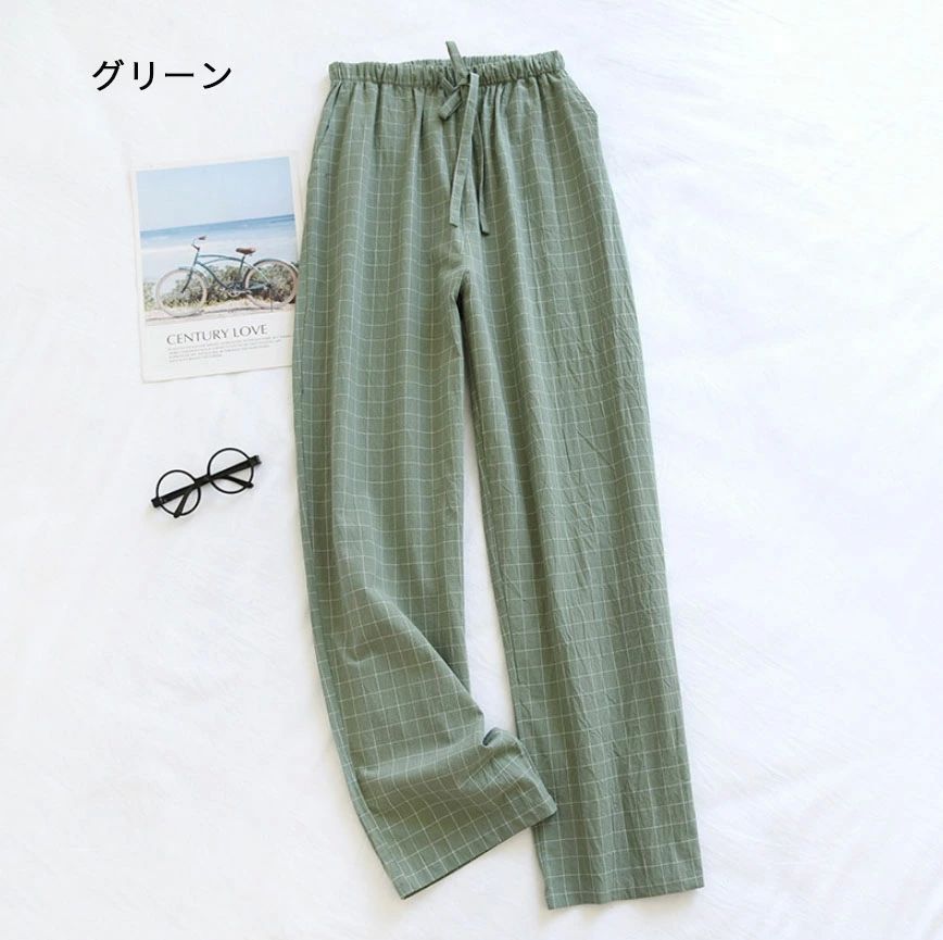 ゆ ボトムス 綿100% ズボン 夏 メンズ ナイトウェア ルームウェア ルームウェア ボトムス 続々入荷中 ネイビー グレー グリーン ブルー グレー(ギンガムチェック) ブルー(ギンガムチェック) S M L XL 2XL