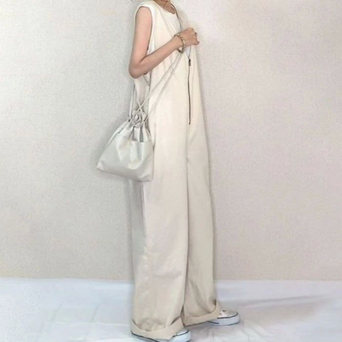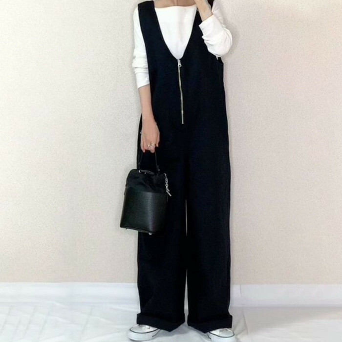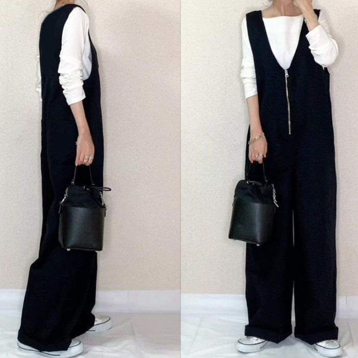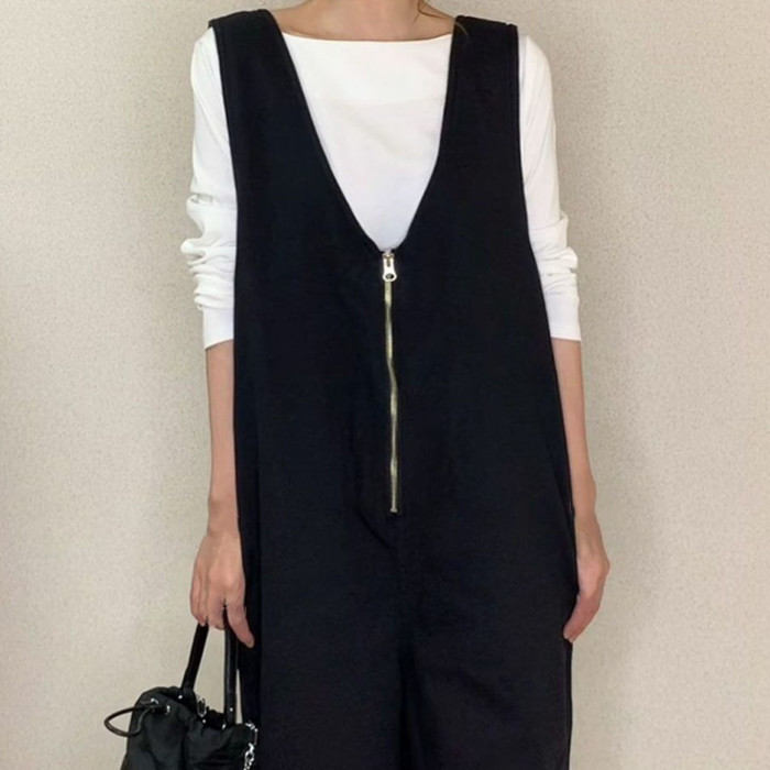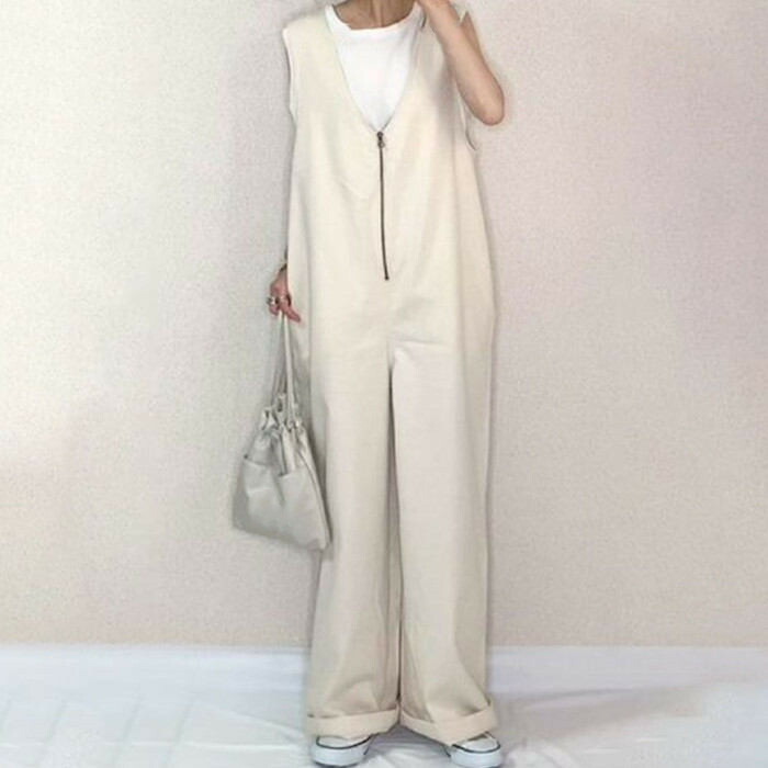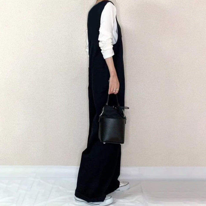 重 ロングパンツ ワイドパンツ オーバ オールインワン サロペット 新作 ブラック ベージュ M L LL 3L