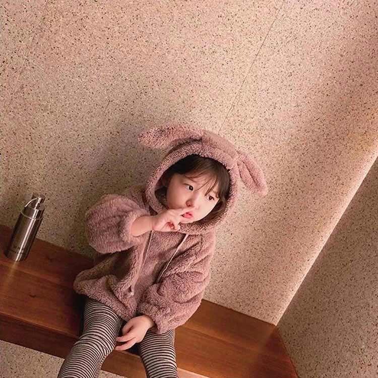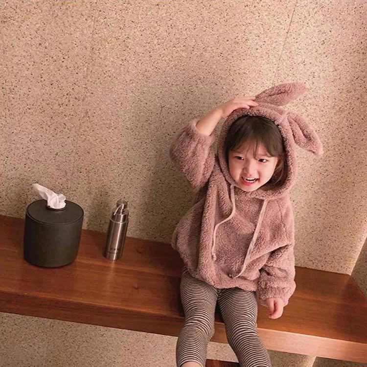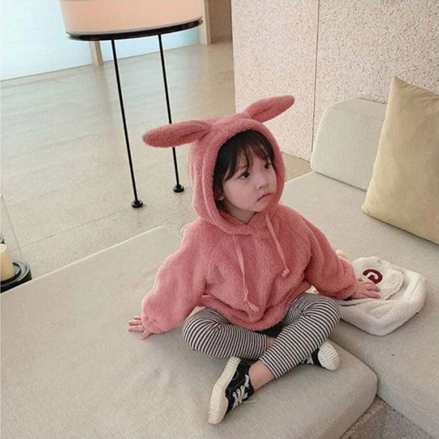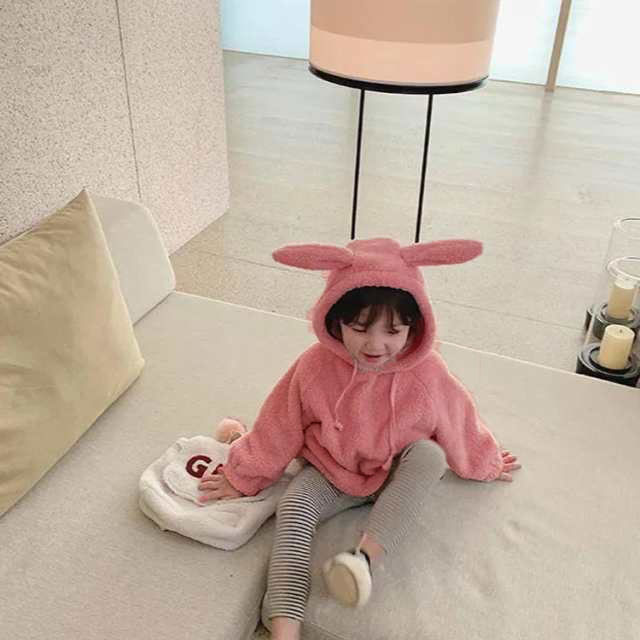 パ もこもこ 長袖 裏起毛 女の子 キッズ プルオーバー ウサギ 子供服 フード付き ルームウェア シンプル パーカー ボアパーカー