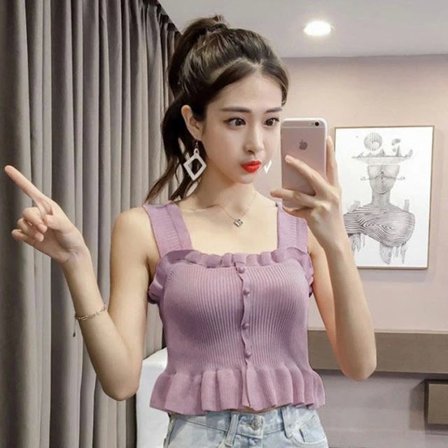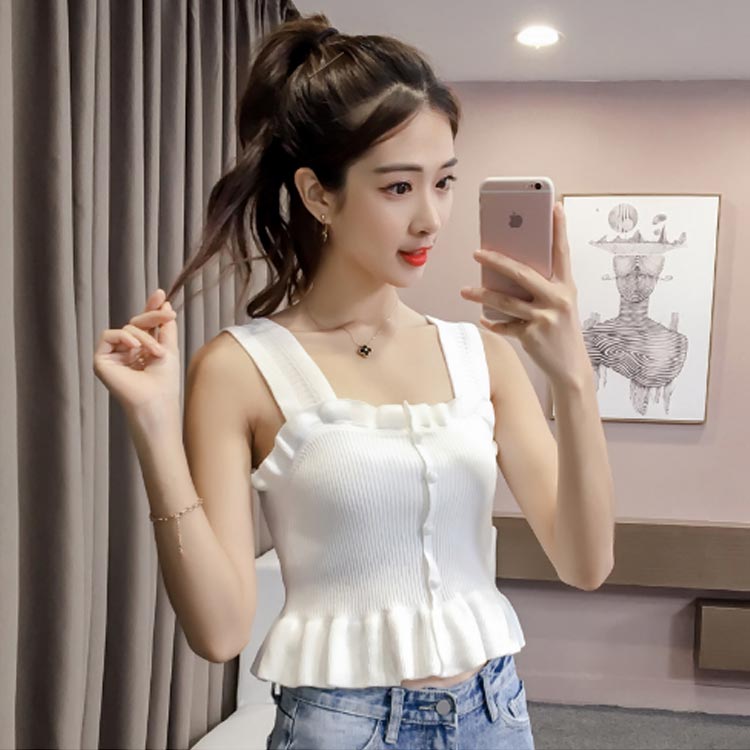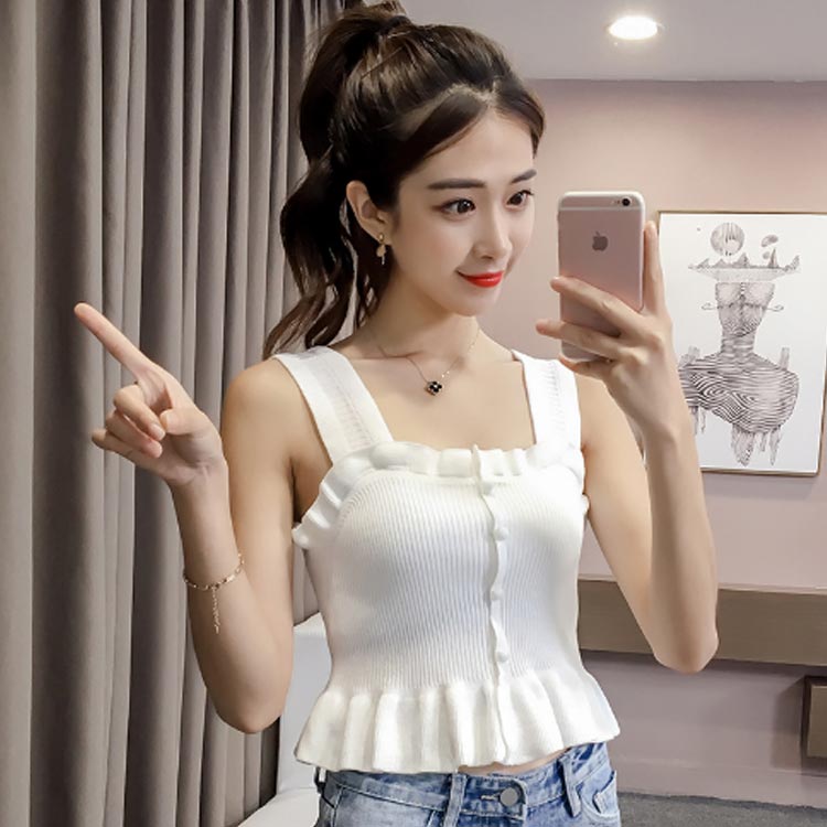 かわい 無地 フリル リブキャミ タン トップス タンクトップ 豊富 ホワイト ブラック ブルー レッド イエロー ベージュ ピンク