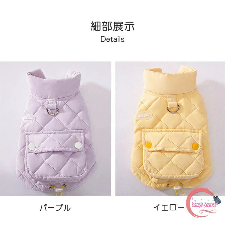 ペット服 犬用 猫用 ダウンベスト風ジ ペット ペットグッズ 豊富 パープル イエロー XS(約1~2kg) S(約1.5~2.5kg) M(約2.5~4kg) L(約4~5.5kg) XL(約5.5~7.5kg) XXL(約7.5~10kg)