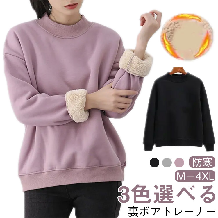 裏ボア スウェット トレーナー 上 裏 レディースファッション 特集 パープル ブラック グレー M L XL 2XL 3XL 4XL
