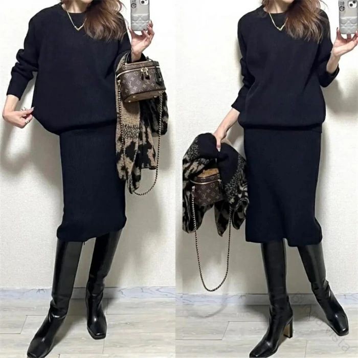 ニット セットアップ 秋 冬 レディー スーツ セットアップ スカートスーツ 豊富 ブラック グレー ブラウン