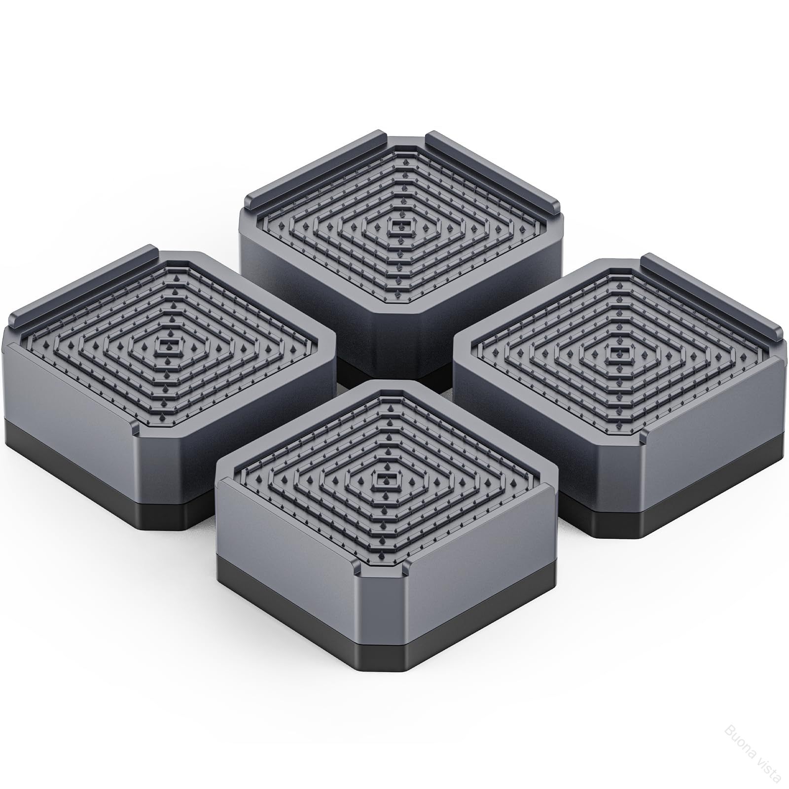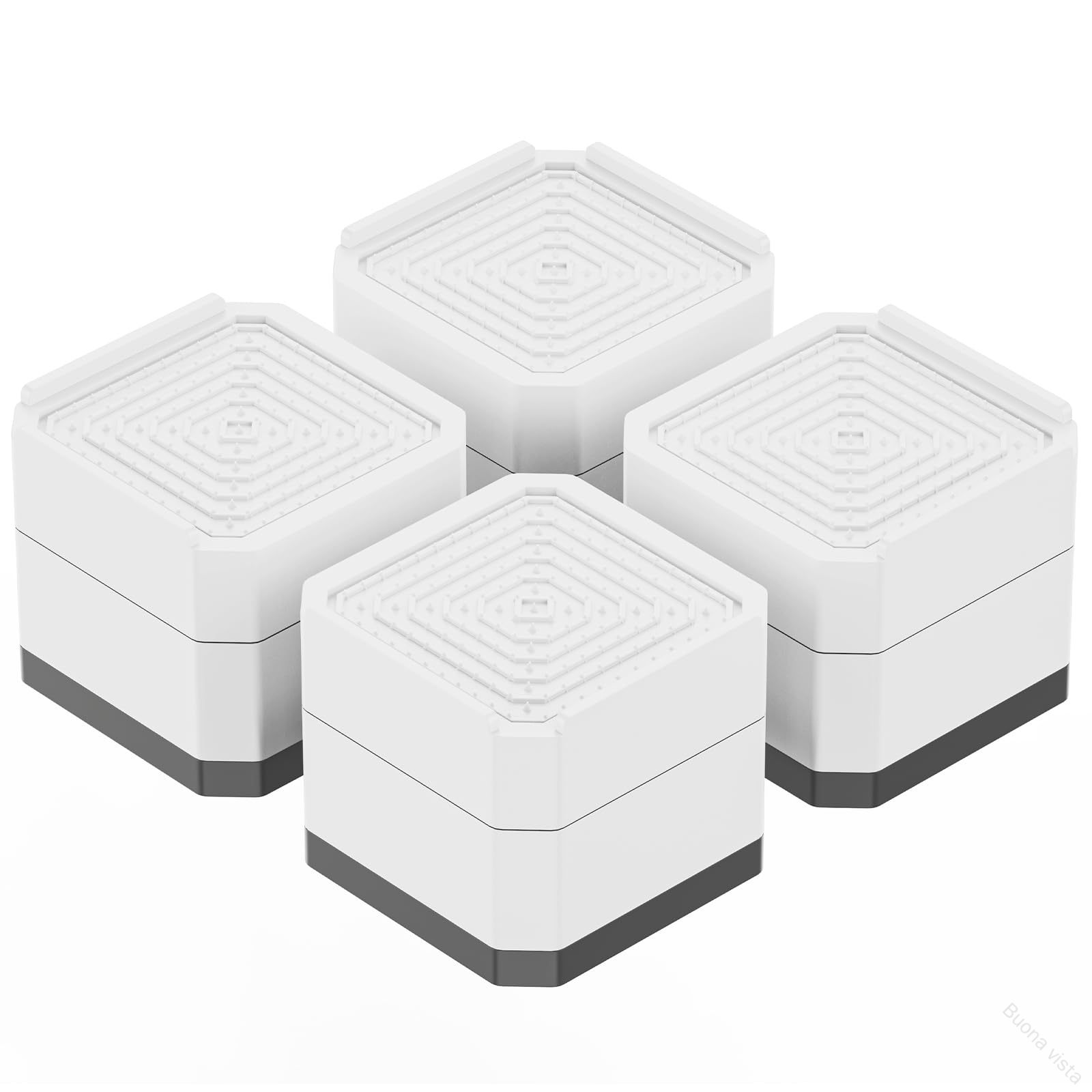 洗濯機が脱水不便、時間かかる洗濯機作動時ガタガタする異音が大きい家電を移動せず、下のスペースを掃除したいいつもご愛顧いただき、ありがとうございます。この製品は、非常に優れた振動吸収能力を持つ高品質のゴムでできています。上部分は頑丈なプラスチック製で高い耐久性があり、下部分は高品質のゴム製で、柔らかく、振動を抑えて滑りを防ぎ、キズから床を守ります。