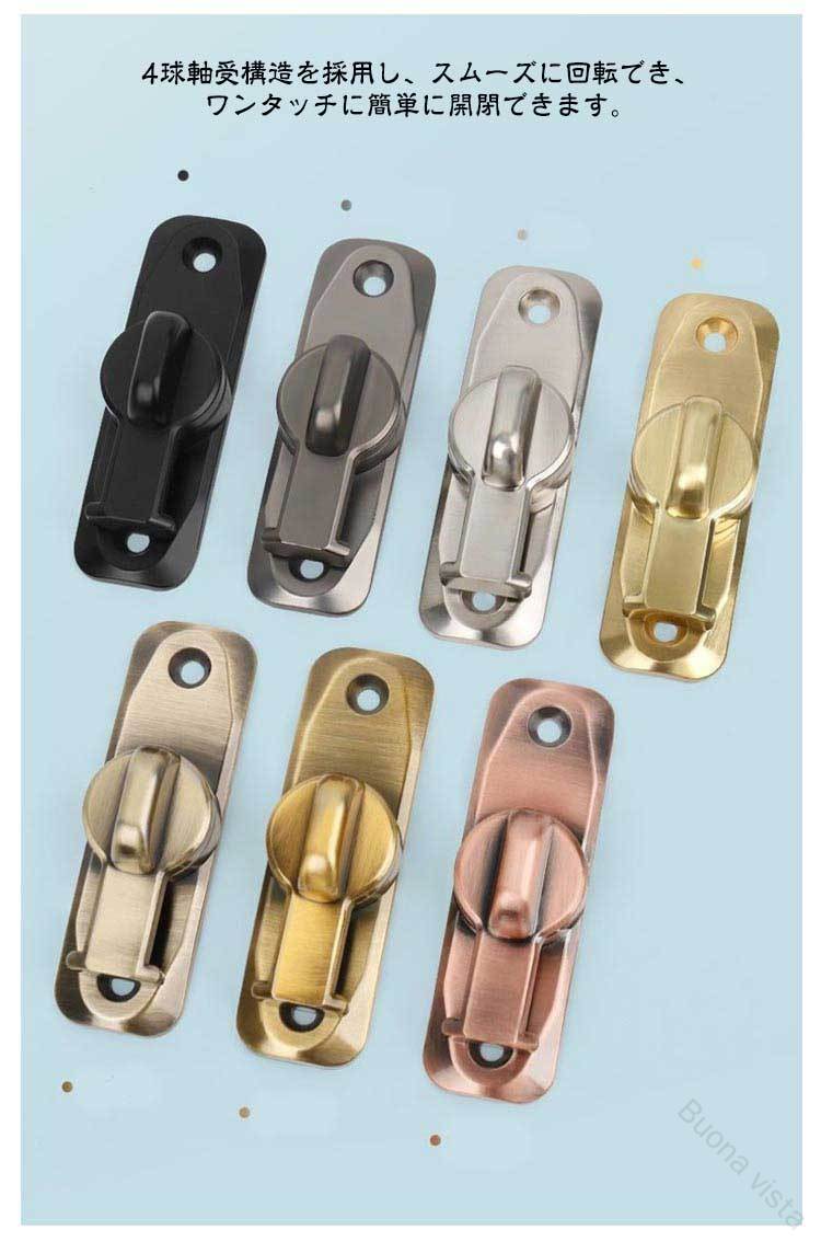 引き戸 90度 180度 窓ロック 穴あけ不要 後付け 亜鉛合金製 引き戸用鍵 ドア留め金ロック 回転式 フリップラッチロック とびらロック スライドロック 部屋 ドアロック 防犯対策に最適 鍵付き