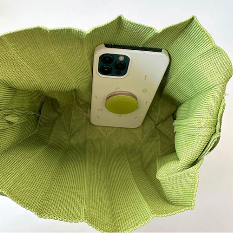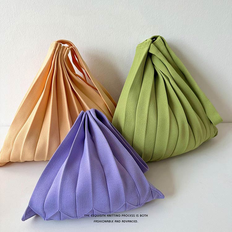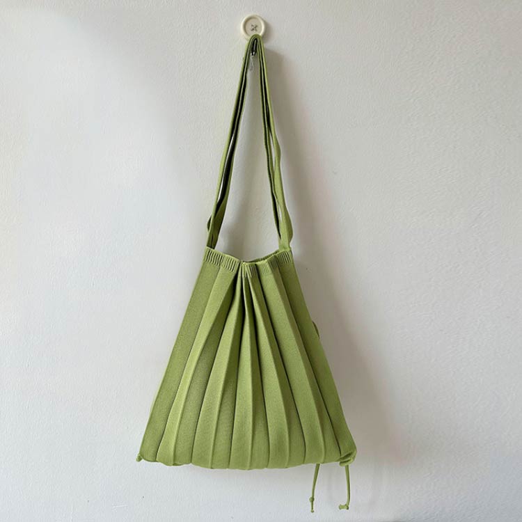 ニット トートバッグ プリーツ 推し活 バッグ 小物 ブランド雑貨 続々登場 ブルー グリーン オレンジ ブラック レッド イエロー グレー コーヒー ダークグリーン ライクブルー グリーン2 パープル S L