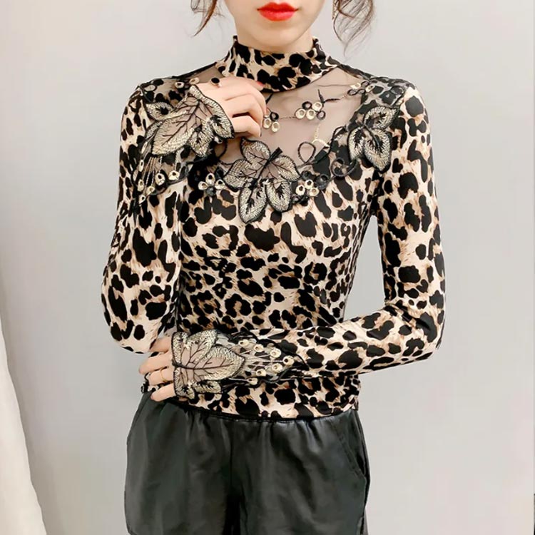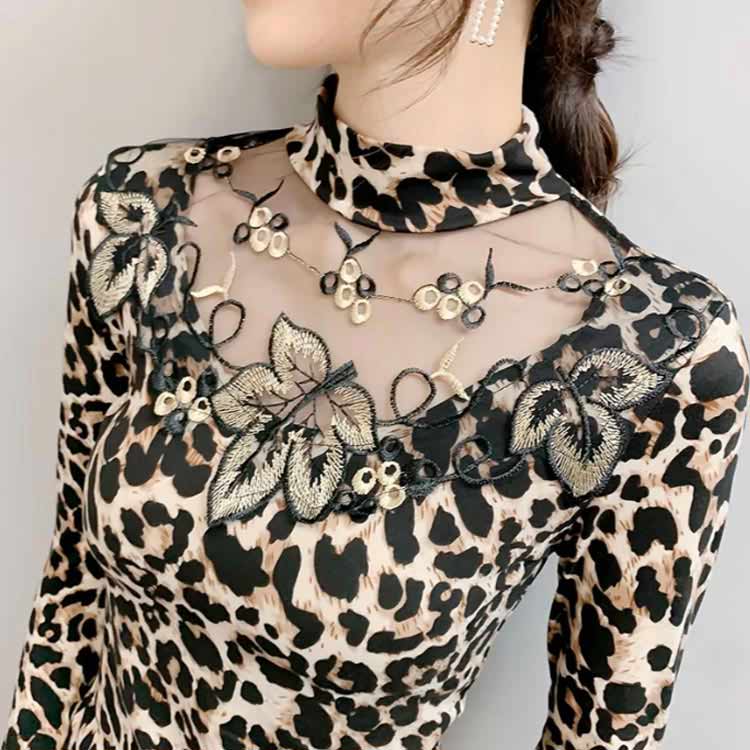 ストレッチ素材 カットソー tシャツ レディースファッション 特集 ヒョウ柄薄手 ヒョウ柄裏起毛 M L XL 2XL 3XL 4XL