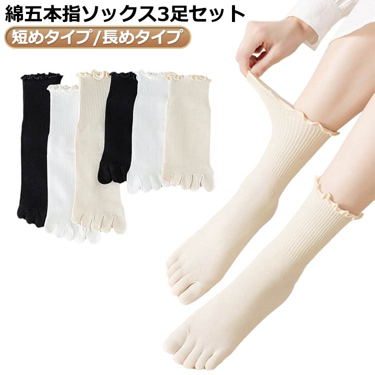綿五本指ソックス3足セット 短め 長め インナー 下着 ナイトウエア 早い者勝ち 3足セット長め 3足セット短め