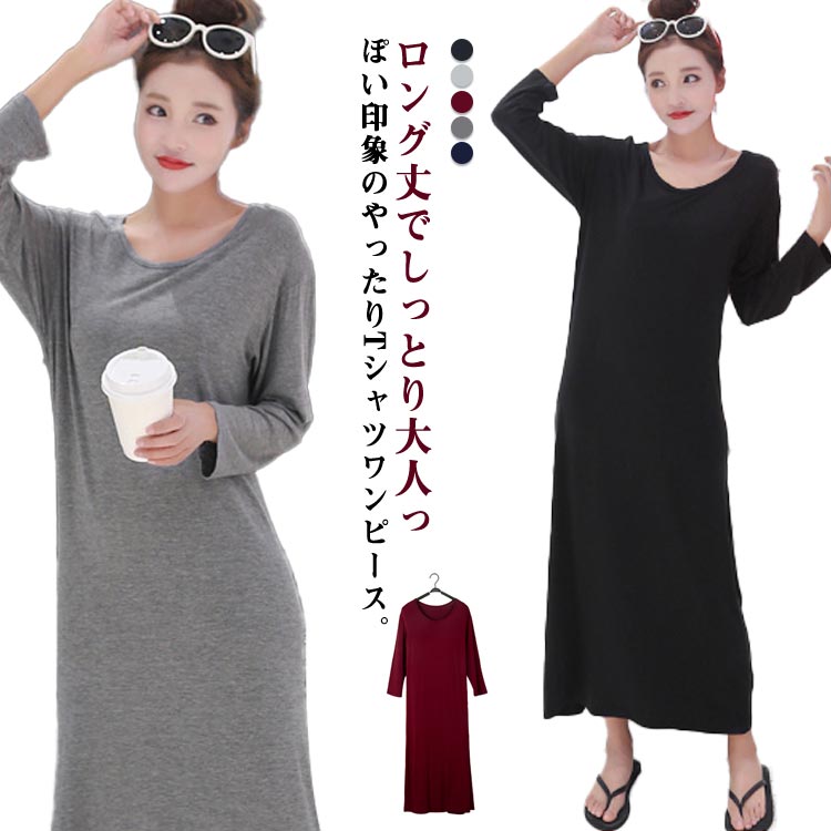 大人 Tシャツワンピース ロングTシャ ワンピース 続々登場 ブラック ダークグレー ワインレッド グレー ネイビー S M L XL