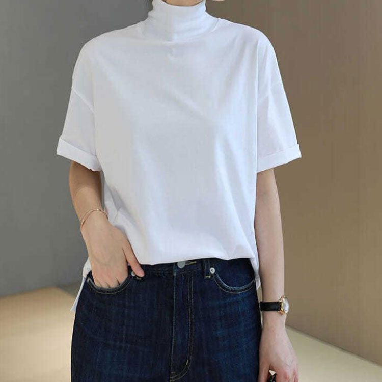 首もとをおしゃれに隠せる Tシャツ レ レディースファッション 特集 ブラック ホワイト M L XL 2XL 3XL