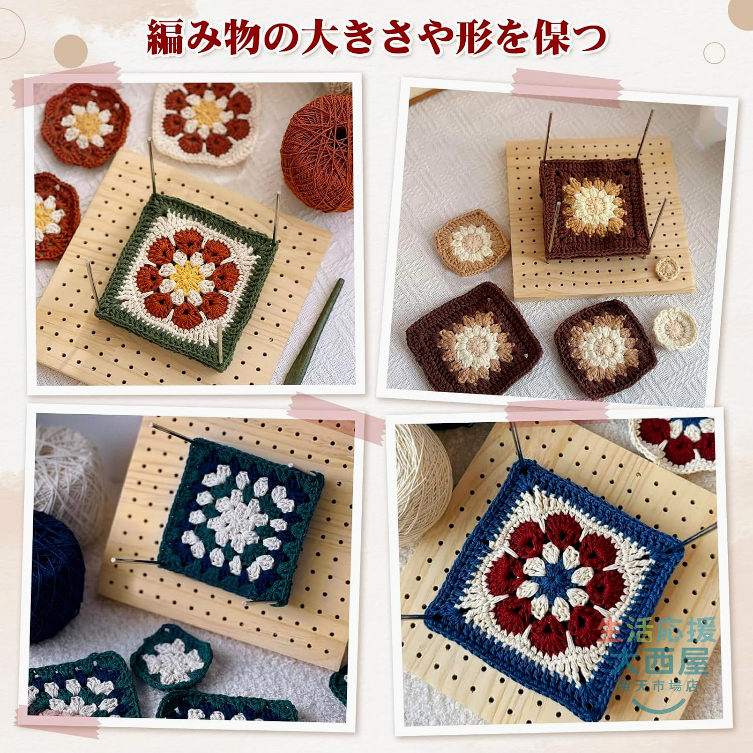 木製ブロッキングボード かぎ針編み用 日用品雑貨 文房具 手芸 新作 23.5cm 30cm