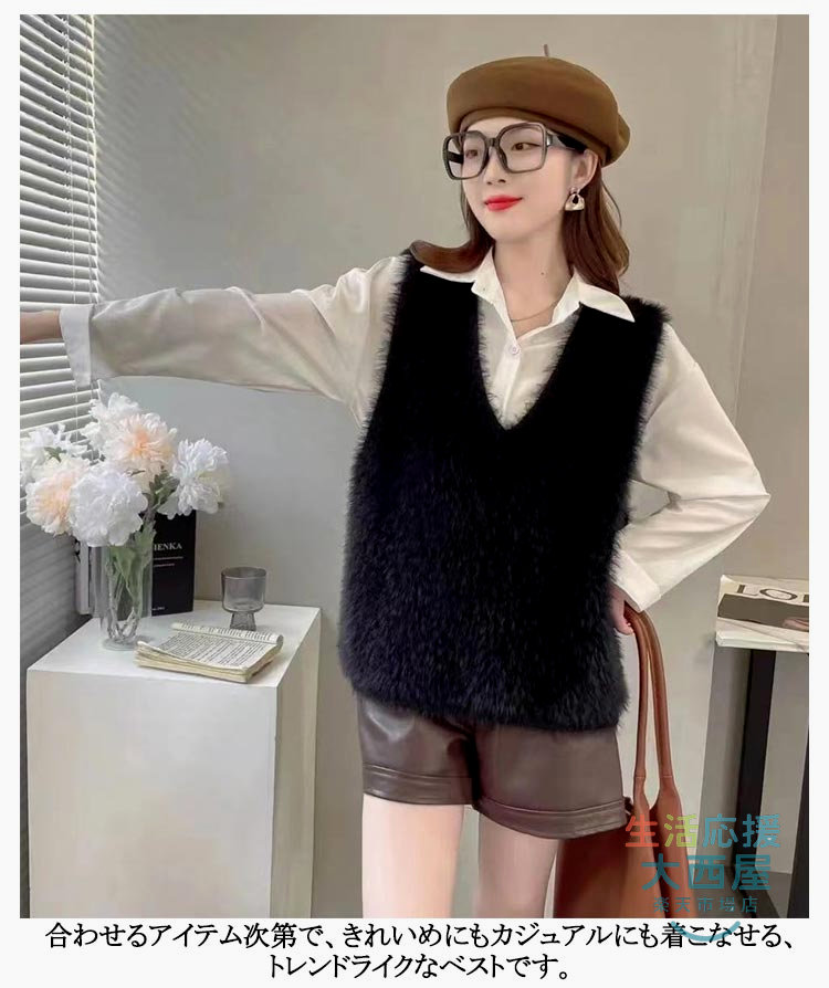 ニットベスト レディース 秋冬 シャギ トップス ベスト 豊富 黒 灰 ブラウン S M L XL 2XL 3XL