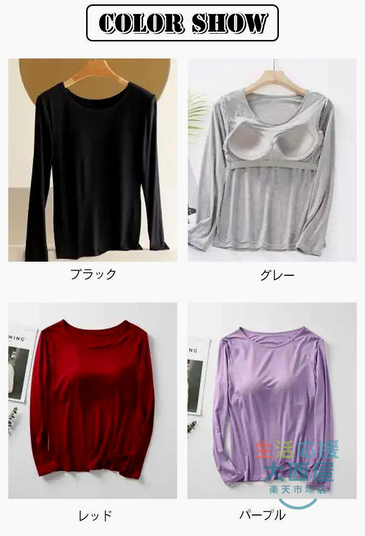 インナー 長袖 カップ付き 肌着 ブラ レディース インナー 下着 ブラトップ 新登場! ブラック グレー レッド パープル ピンク M L XL 2XL 3XL