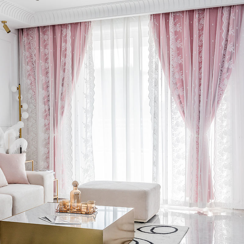 両開き 姫系 2重カーテン 一体型カー ベージュ ライトグレー ブルー ピンク