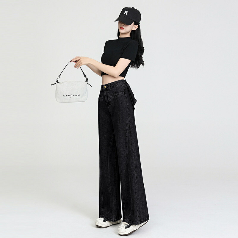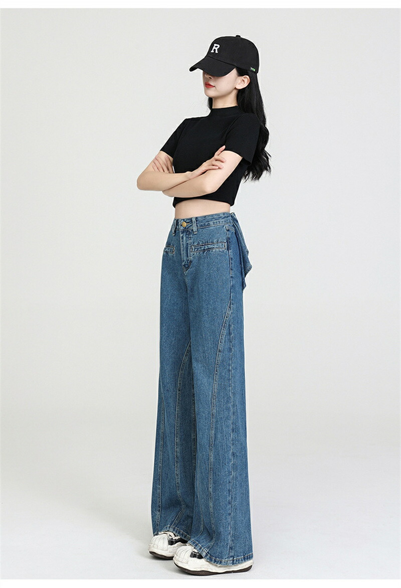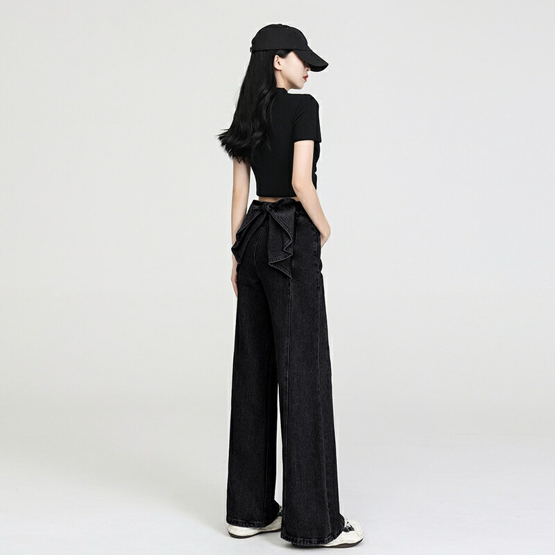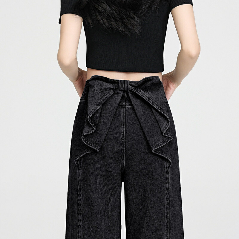 バックリボンデニムパンツ デニムパンツ ボトムス パンツ 新登場! ブラック ブルー S M L XL 2XL