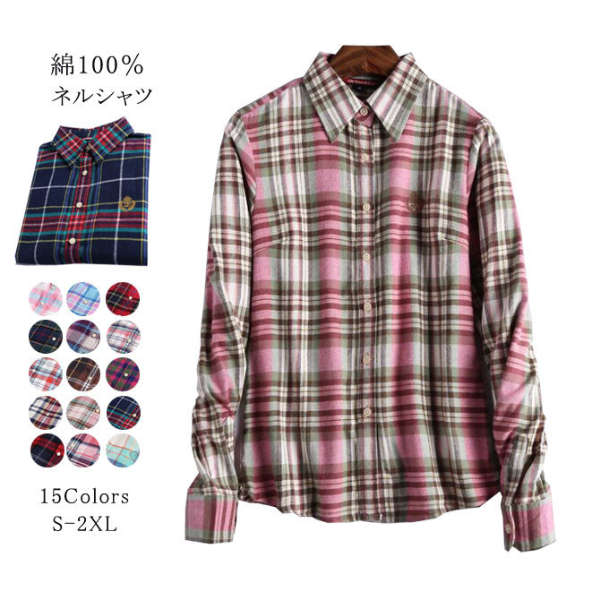 フランネル チェックシャツ ネルシャツ レディースファッション 超目玉商品 color1 color2 color3 color4 color5 color6 color7 color8 color9 color10 color11 color12 color13 color14 color15 S M L XL 2XL