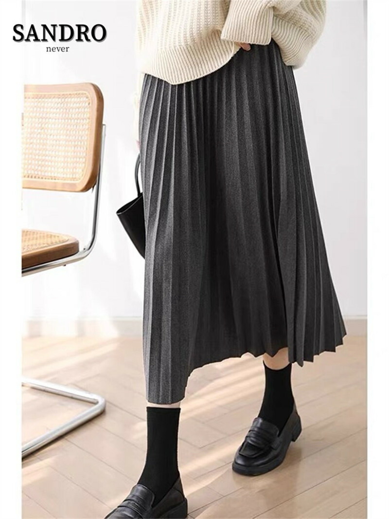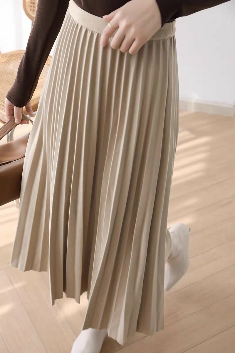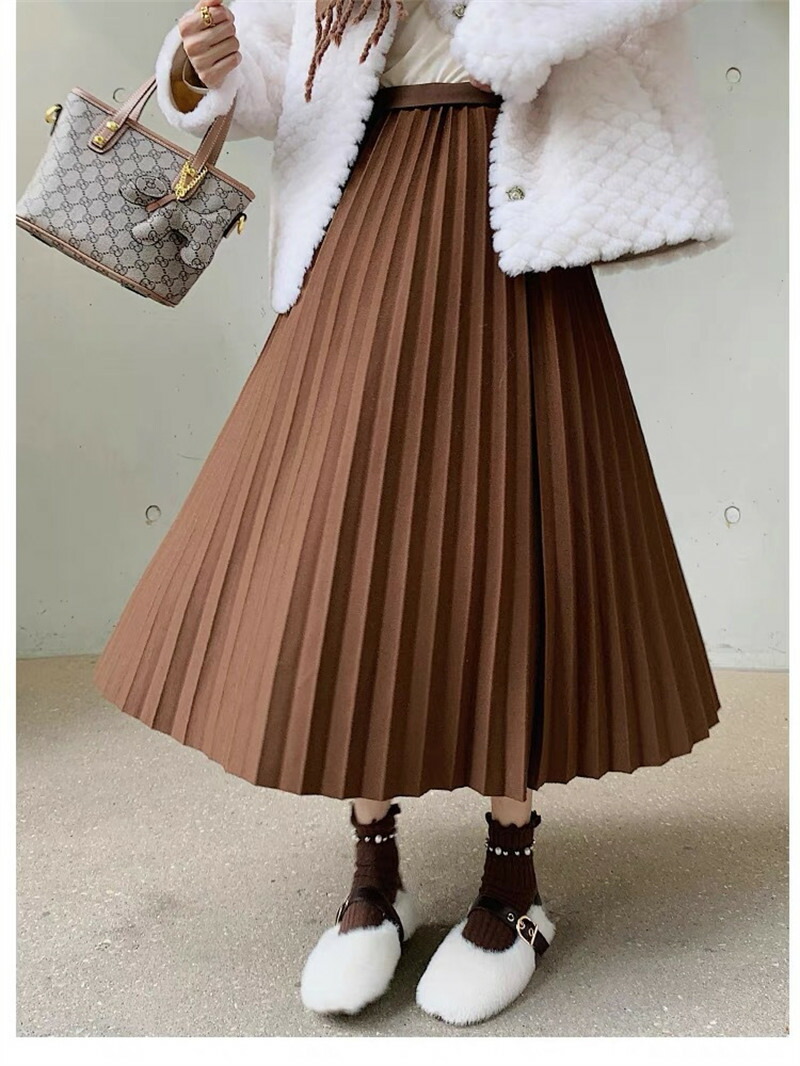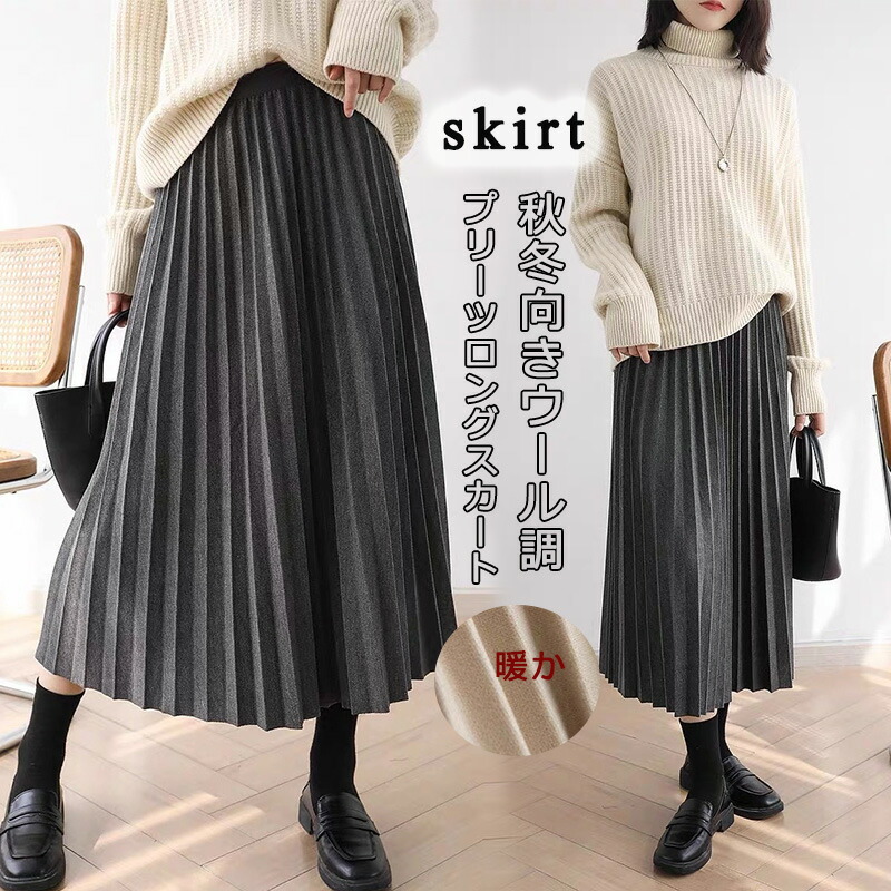 プリーツスカート 秋冬 ウール調 ロン ボトムス スカート 特集 ブラック 杏色 グレー コーヒー