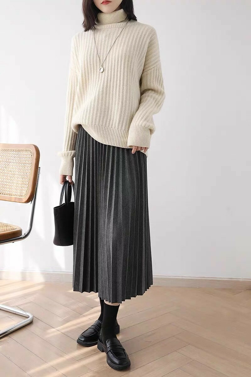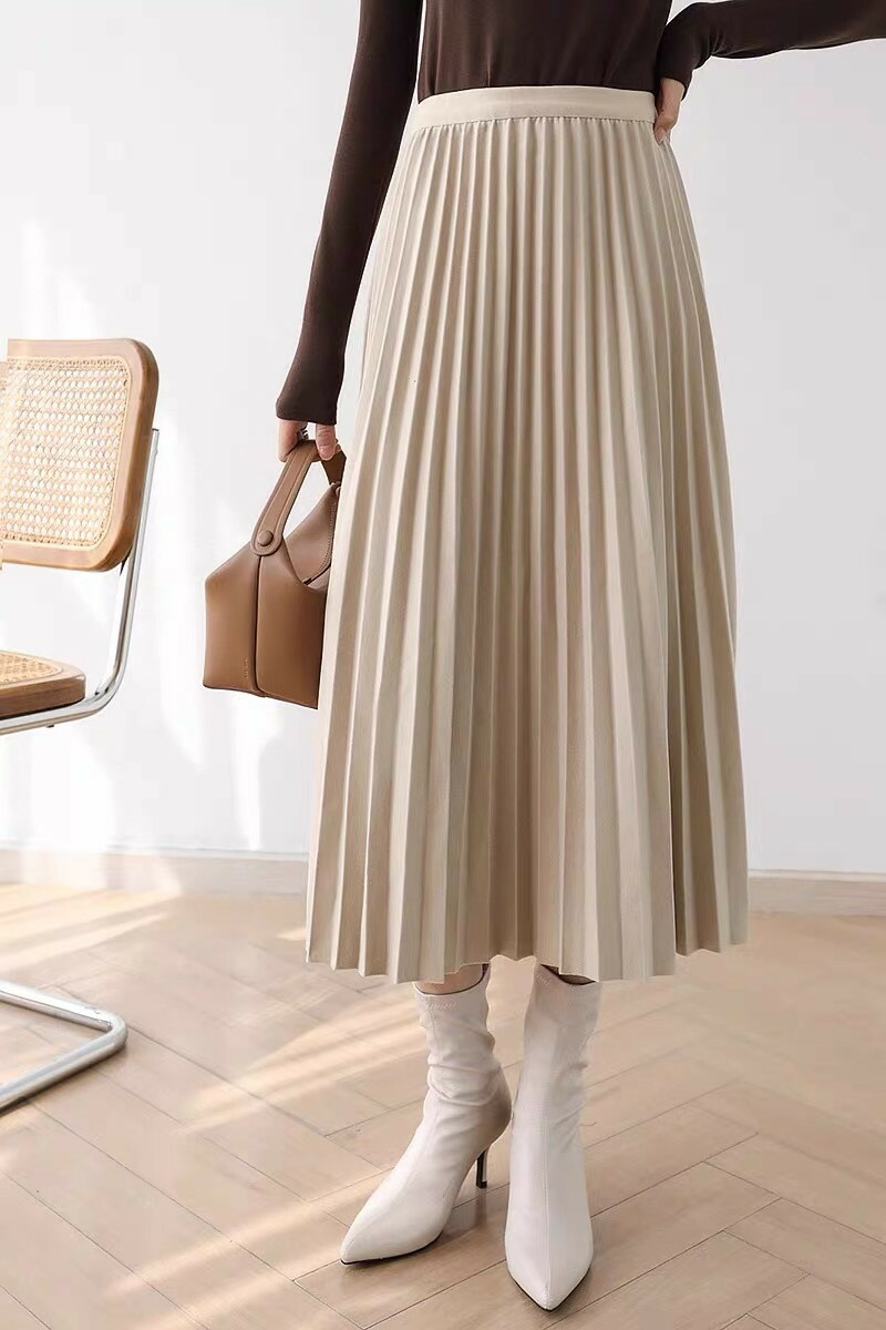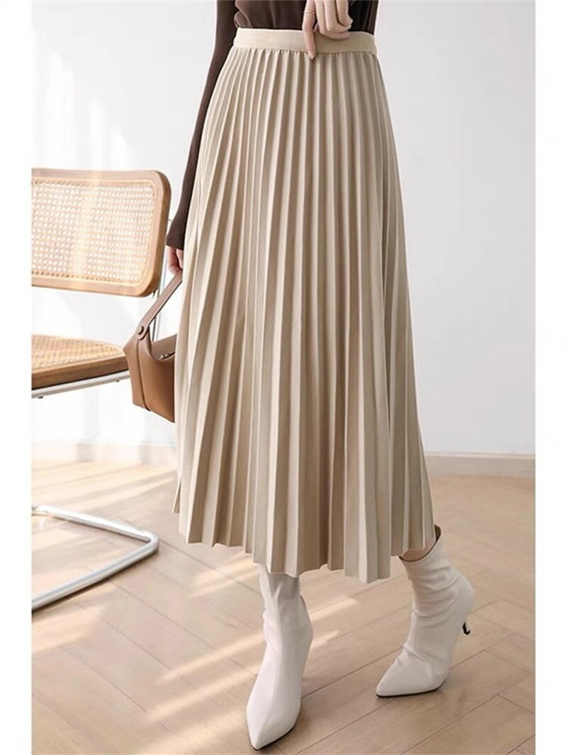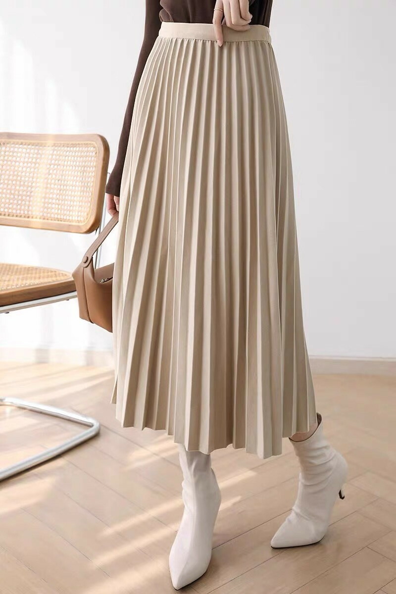 プリーツスカート 秋冬 ウール調 ロン ボトムス スカート 特集 ブラック 杏色 グレー コーヒー