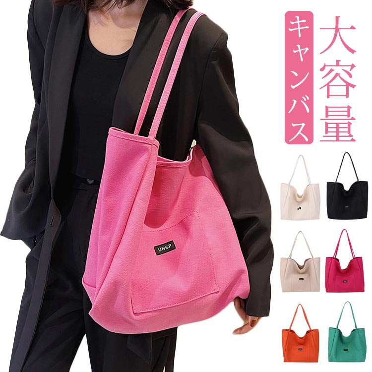 バッグ キャンバス 大きめ トートバッ バッグ 小物 ブランド雑貨 続々登場 ピンク マゼンタ オレンジ グリーン ベージュ ブラック ブラウン