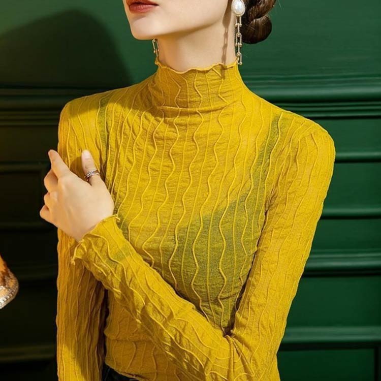 タートルネック シアー インナー 透け レディースファッション 通販 ホワイト ブラック イエロー ブラウン ダークブラウン S M L XL 2XL