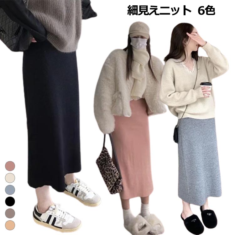 スカート リブ ニットタイト ロングス ボトムス スカート 通販 ピンク ベージュ グレー ブラック オートミール ライトブラウン S M L XL 2XL 3XL
