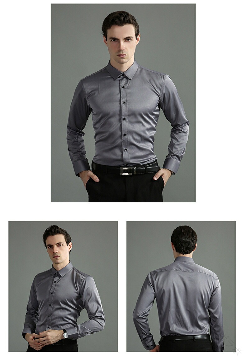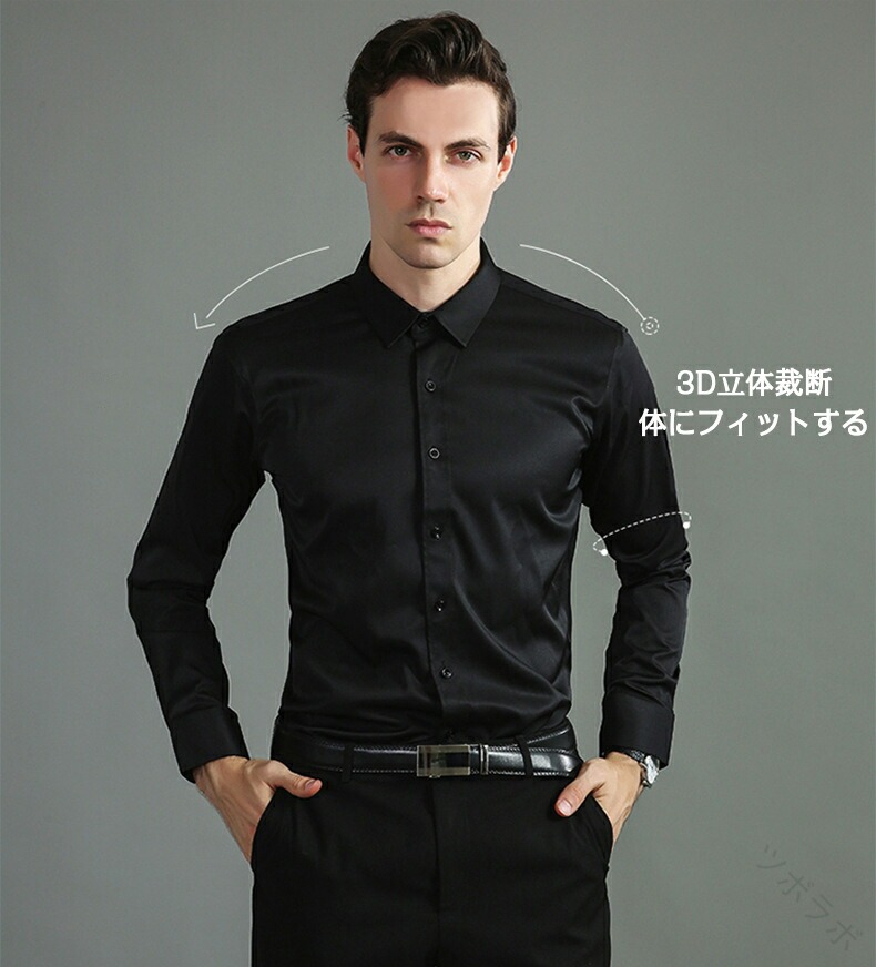 ビジネスシャツ オフィスカジュアル メンズプレゼント 高級感 長袖シャツ ノーアイロン 形態安定 光沢風合い おしゃれ ストレッチ素材