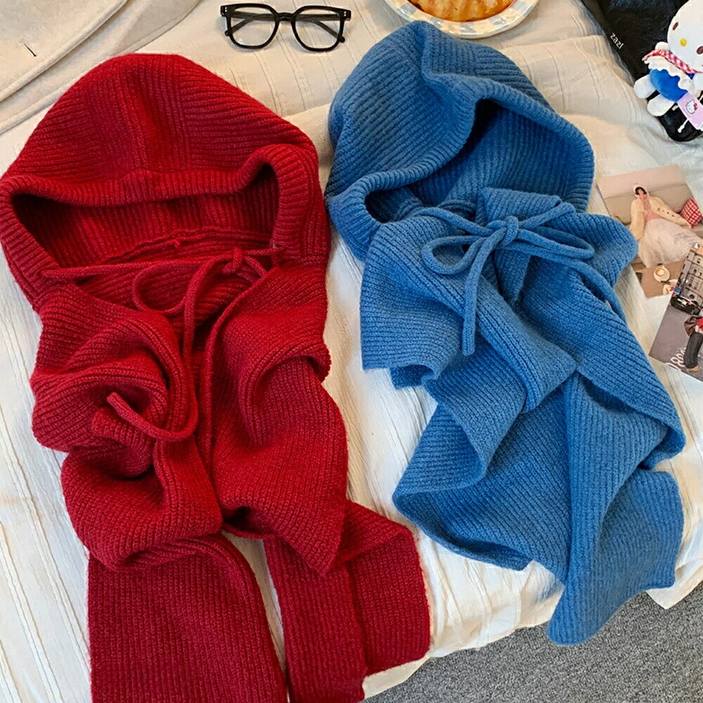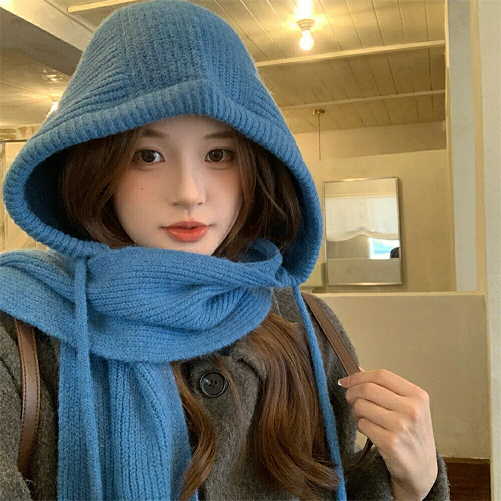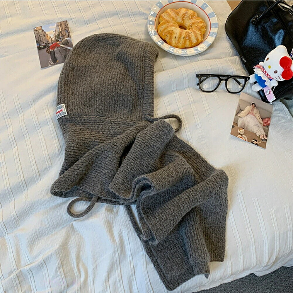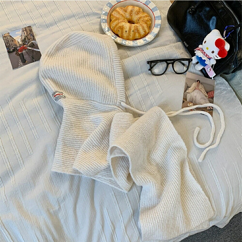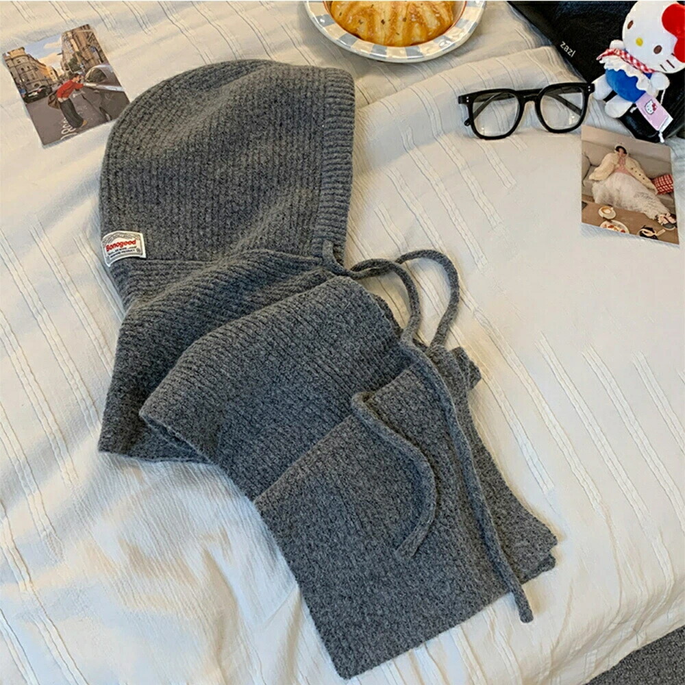 秋冬防寒 レディースフードマフラー アウターコーデ 暖かいニット おしゃれ防寒 バラクラバ ネックウォーマー 通学通勤 耳あて付き 軽量ストール カジュアルスタイル ボリュームフード 保温 洗える素材