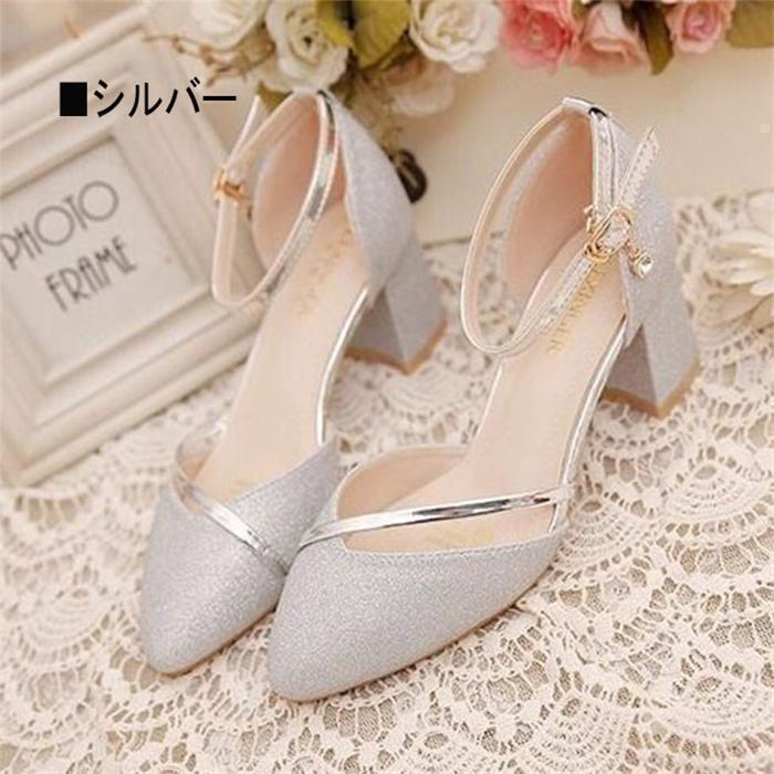 結婚式用パンプス 疲れないヒール 痛く 靴 新登場! シルバー ゴールド ブラック 34(22.0cm) 36(23cm) 37(23.5cm) 38(24cm) 39(24.5cm)