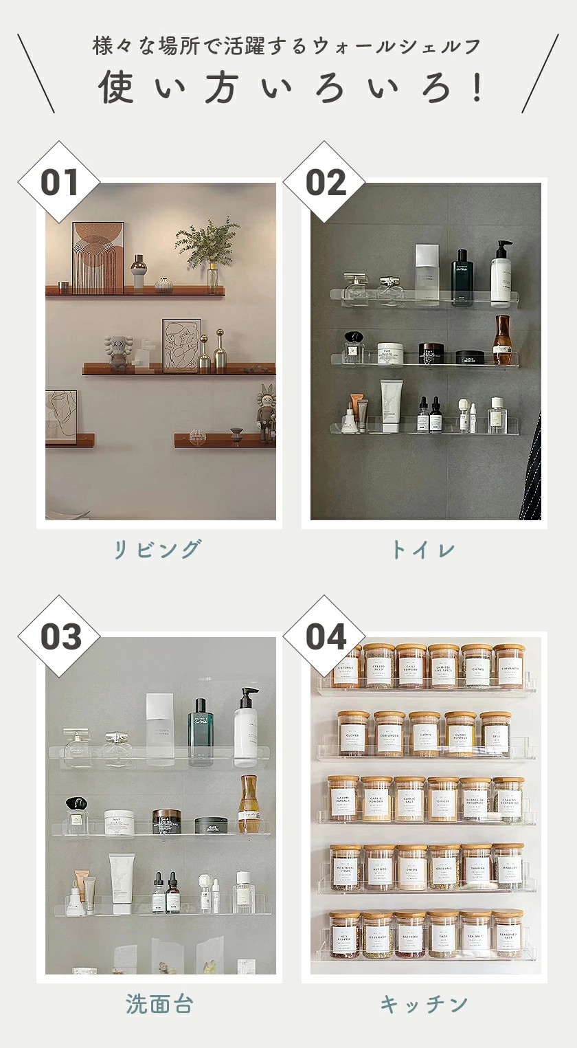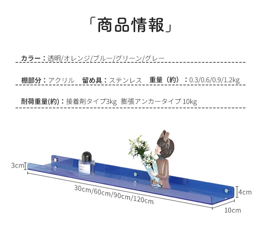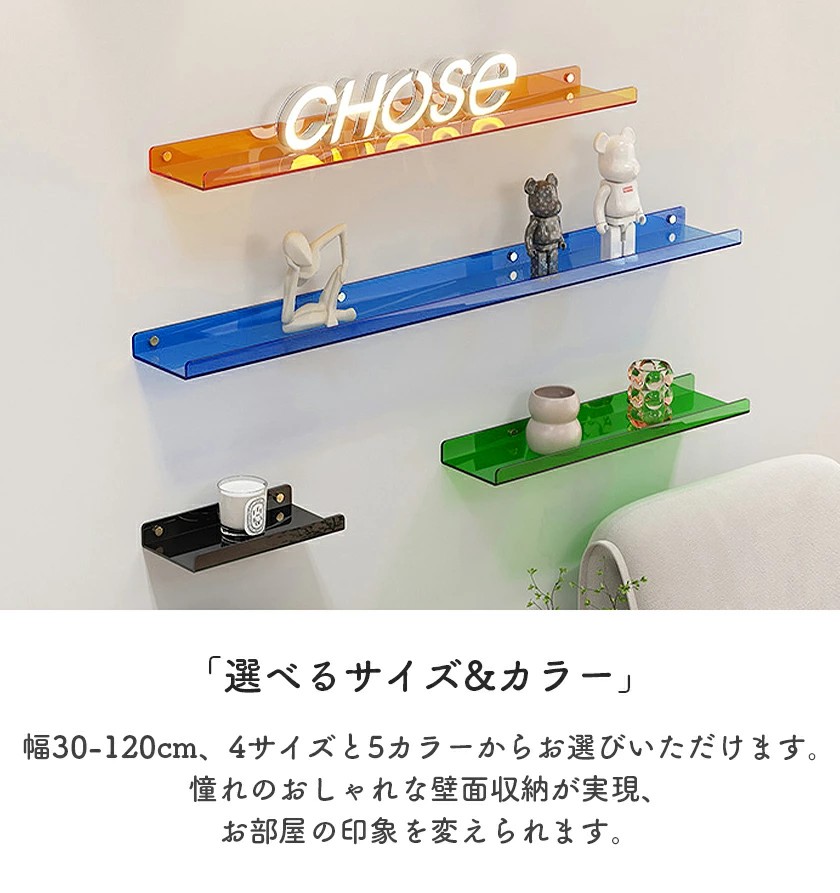 ウォールシェルフ マガジンラック 壁掛 透明 オレンジ ブルー グリーン グレー 30*10cm 60*10cm 90*10cm 120*10cm