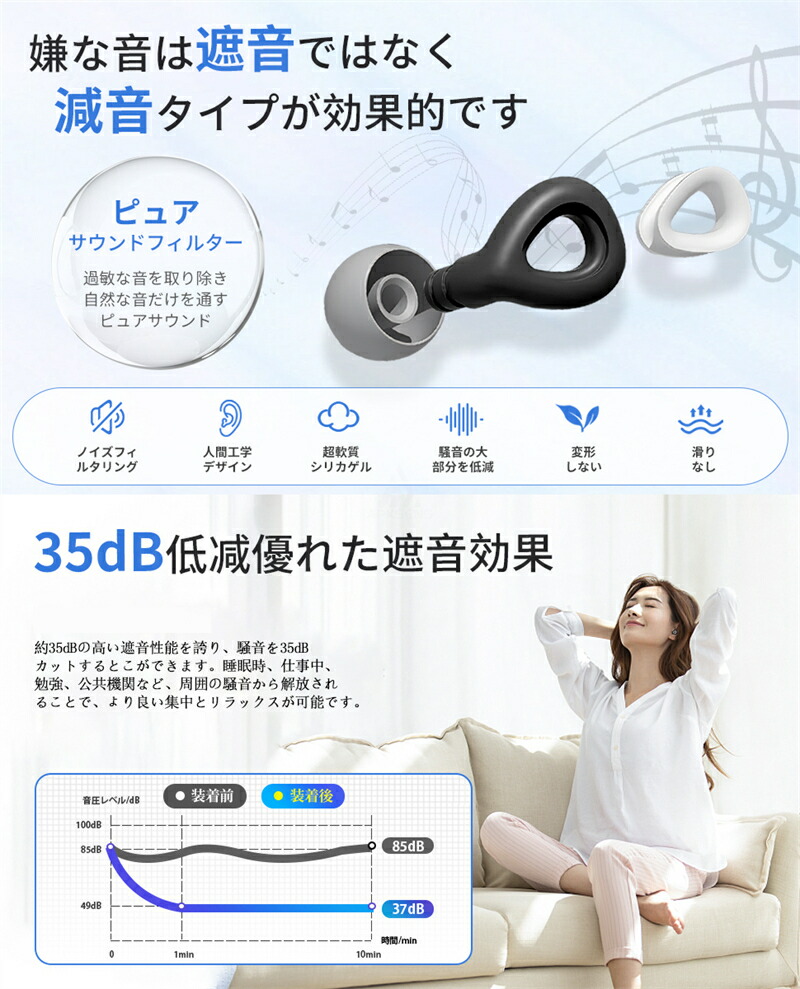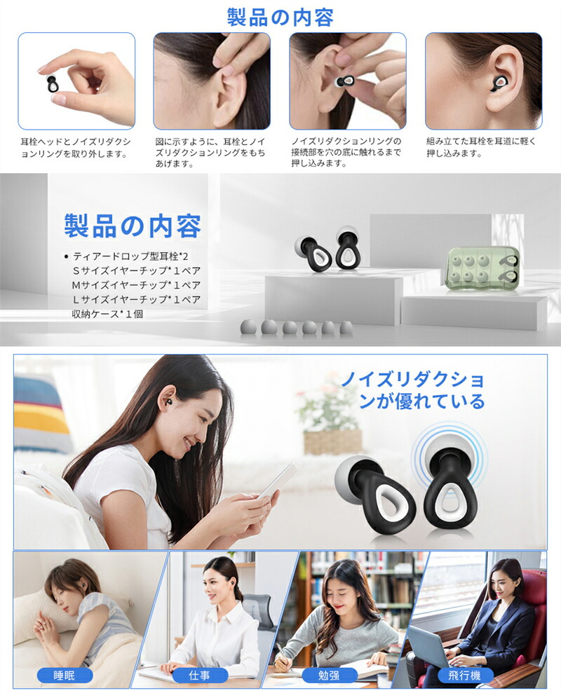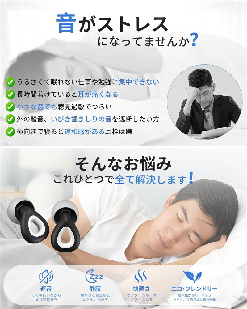 耳栓 遮音 リラックス 飛行機 快眠 ブラック パープル