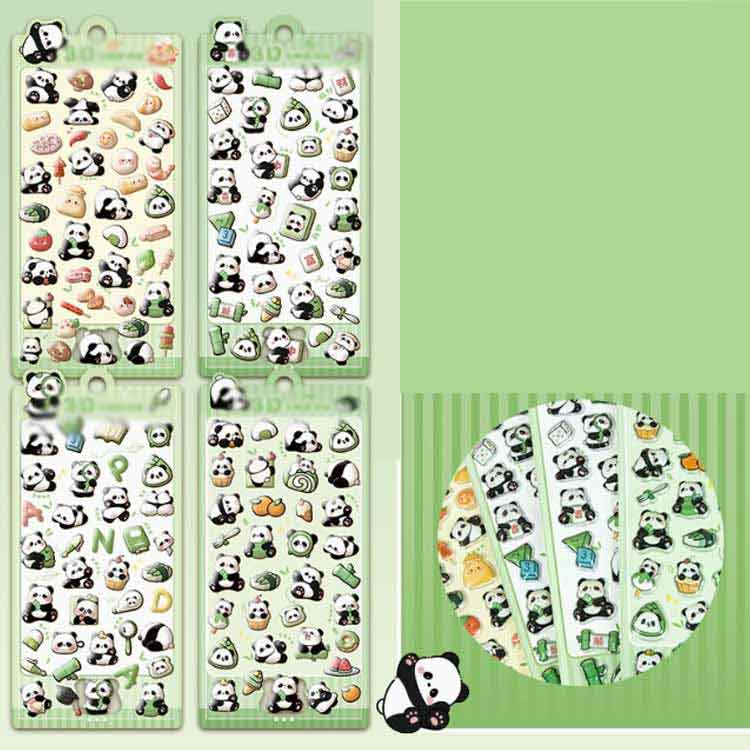 10枚セット シール ぷくぷくシール ご褒美シール 可愛い パンダ 立体 3D ぷっくり 装飾用 ごほうびシール DIY用 手帳 ステッカー アルバム キラキラ 子供 デコシ スマホケース飾り