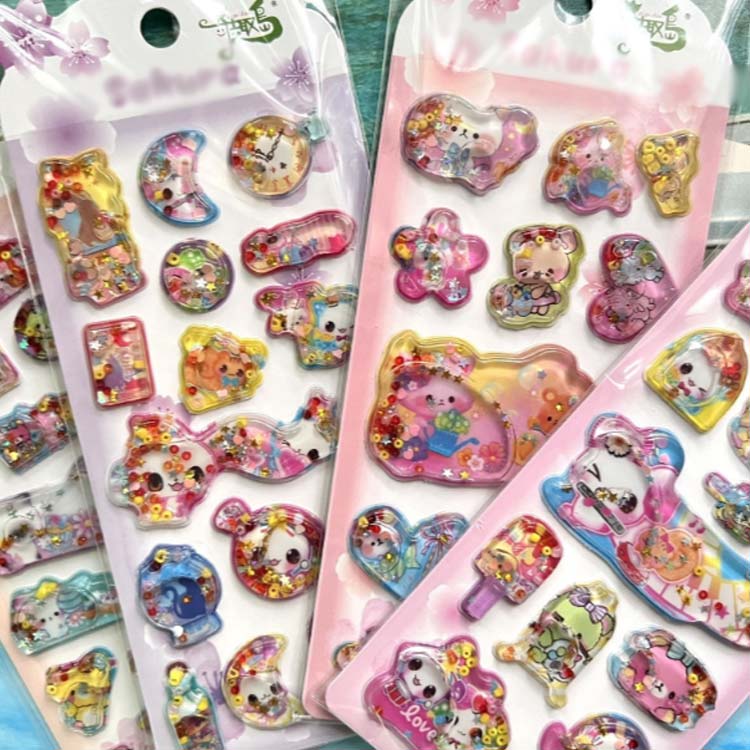3D ぷくぷく ウォーターシール ボン 文房具 事務用品 ラベル ステッカー シール ステッカー 新作 4枚セットA 4枚セットB 4枚セットC