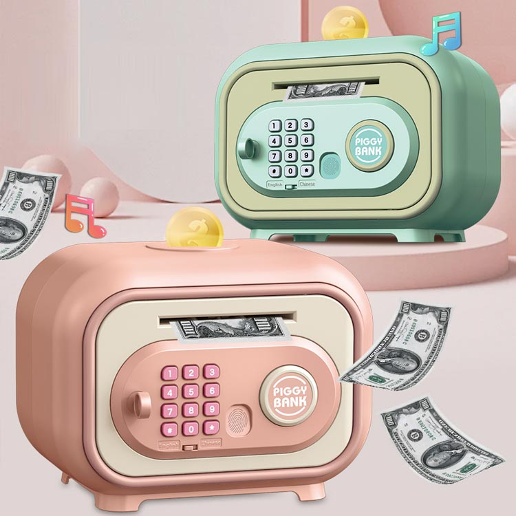 玩具 指紋認証 かわいい 金庫型 お小 グリーン ピンク
