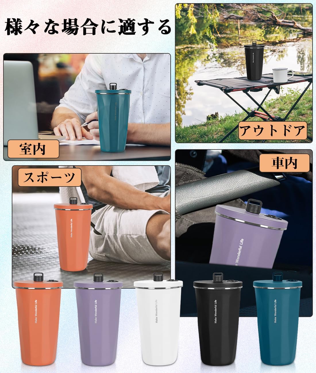 コーヒーカップ キャンプ マグボトル キッチン用品 食器 調理器具 早い者勝ち ブラック ホワイト オレンジ パープル ブルー グラデーション・ベージュ グラデーション・ピンク グラデーション・グレー グラデーション・グリーン グラデーション・ブラック 専用紐 ある 専用紐 ない