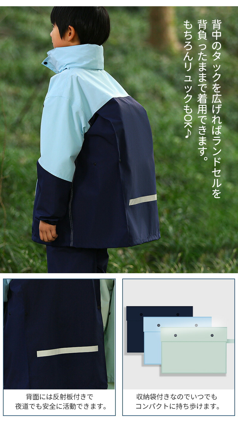 レインコート キッズ 上下 セパレート ランドセル 対応 上下セット 合羽 カッパ レインウェア 子供 ジュニア 防水 収納袋付き レインスーツ カッパ上下レインウエア 男の子 中学生 140c 雨具
