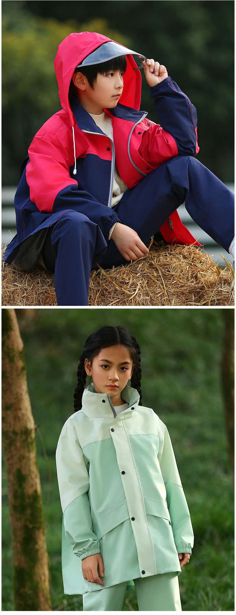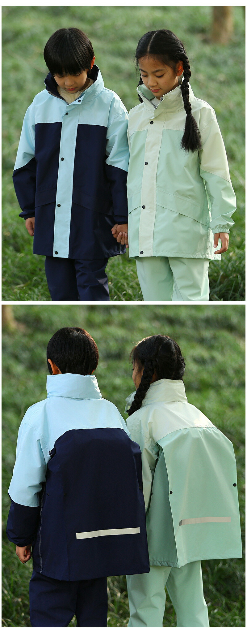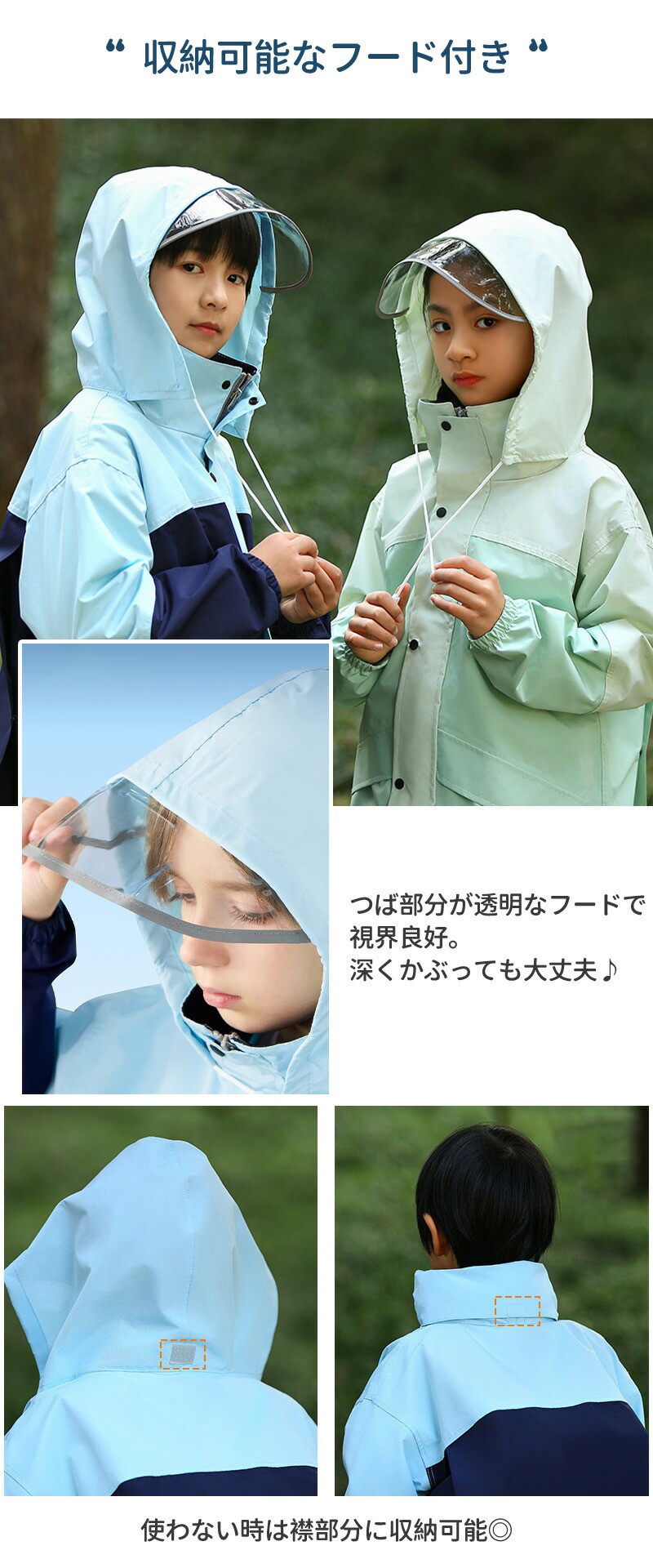 レインコート キッズ 上下 セパレート ライトグリーン ネイビー/ブルー グリーン/ブルー XL 2XL 3XL 4XL