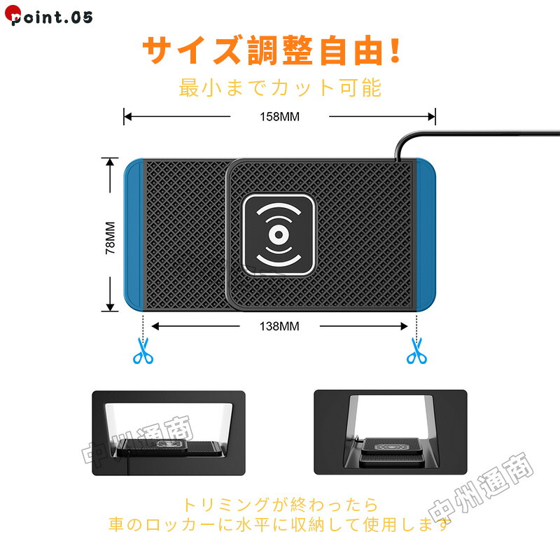 ワイヤレス充電器 車載 ホルダー 置き USB TYPE-C 0.3M 1M