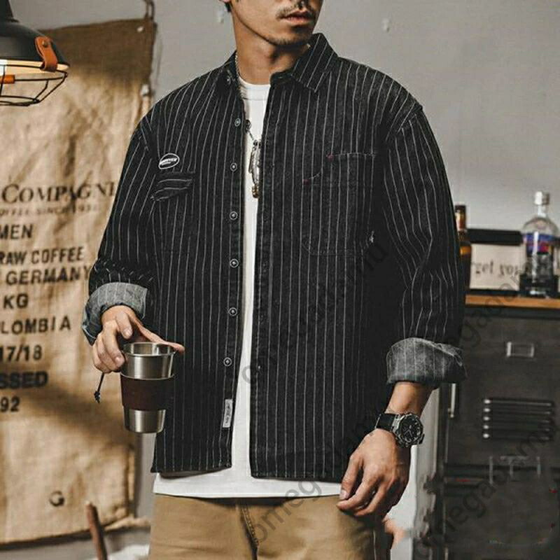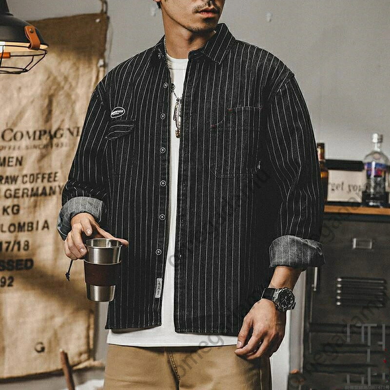シャツ メンズ デニムシャツ メンズシャツ 長袖シャツ ストライプシャツ アメカジ 厚手 紺 秋服 柄シャツ