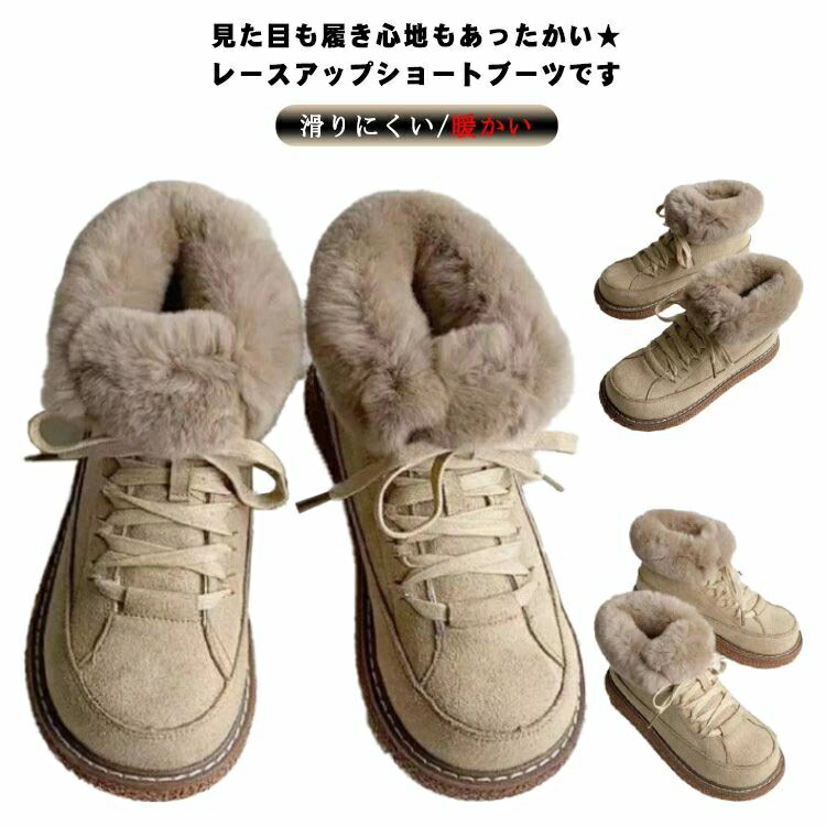 ムートンブーツ あったか フェイクファー レディース レースアップ ショートブーツ ボア 冬 シューズ 靴 くつ 編み上げ 防滑 滑りにくい 暖かい 柔らかい 防寒 カジュアル 歩きやすい エコファー