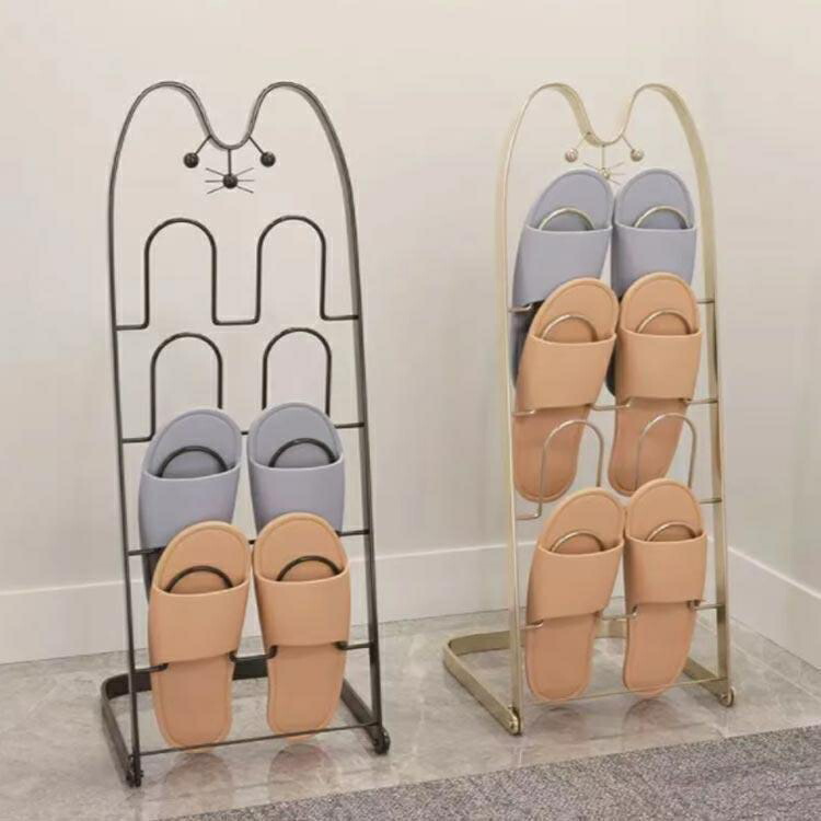 スリッパラック 猫顔 折り畳みスリッパ ブラック ゴールド