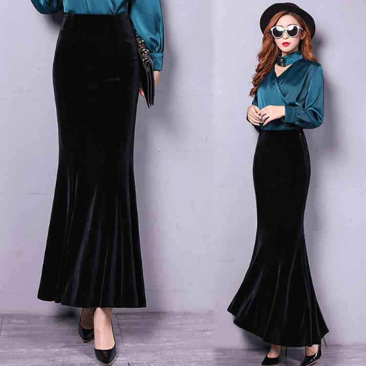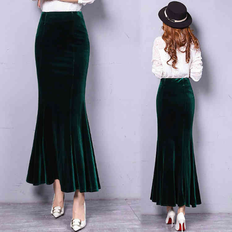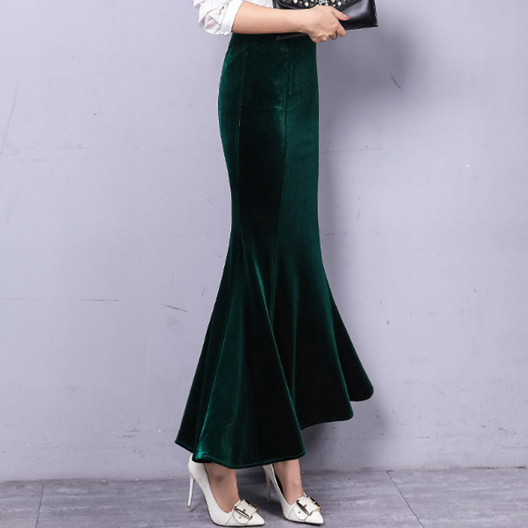 ベロア素材ロングスカート マーメイドス レディースファッション 特集 ブラック グリーン S M L XL XXL