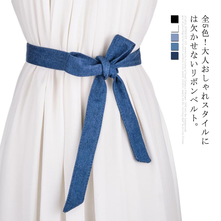 全5色 デニムベルト リボンベルト ウ バッグ 小物 ブランド雑貨 新登場! ダークブルー ブルー ライトブルー ブラック ホワイト